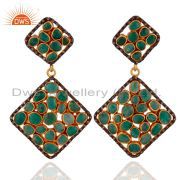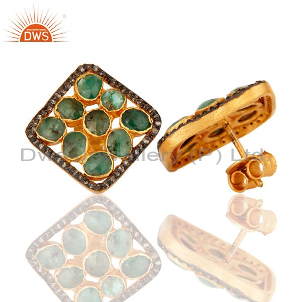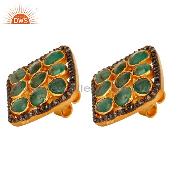 Natural Emerald And Pave Set Diamond 925 Sterling Silver Cushion Stud Earrings