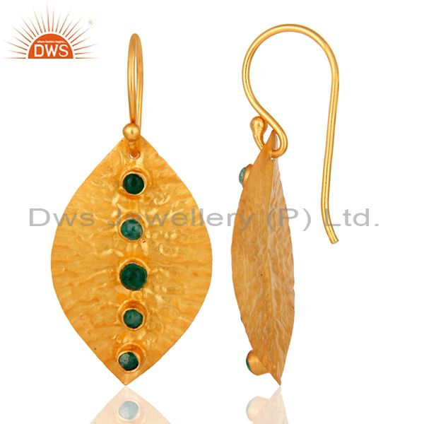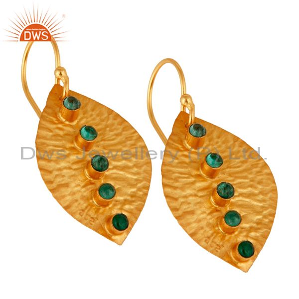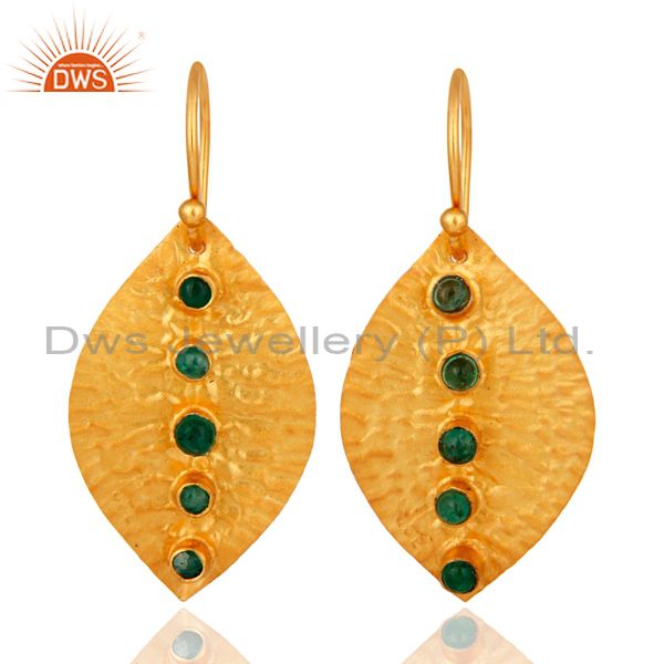 Natural Emerald Dangle 14K Yellow Gold Plated 925 Sterling Silver Earrings