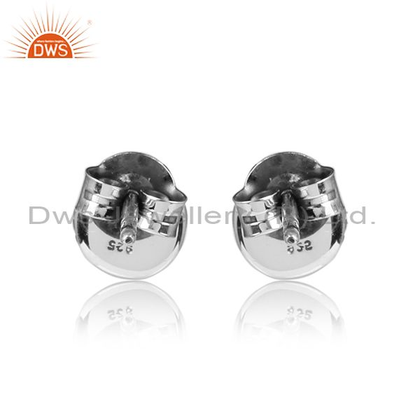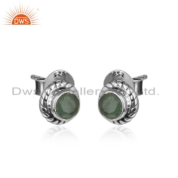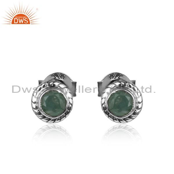 Natural Emerald Gemstone Oxidized Silver Womens Tiny Earrings
