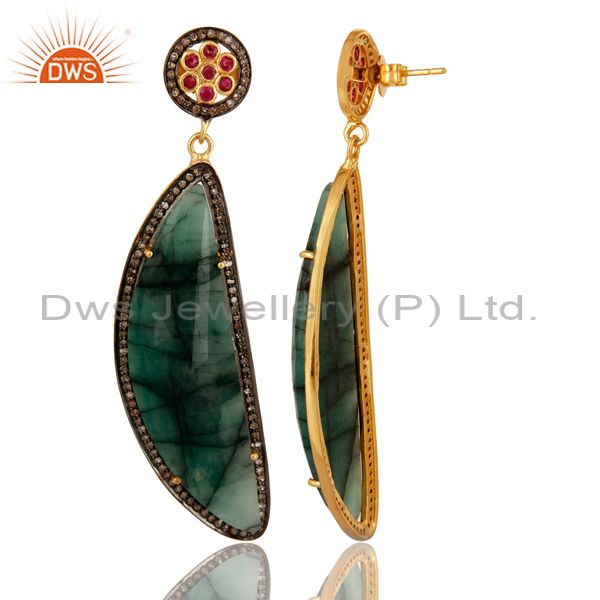 Natural Emerald Slice And Ruby Pave Diamond Sterling Silver Dangle Earrings