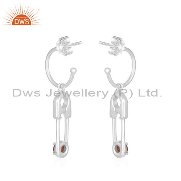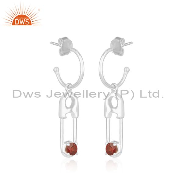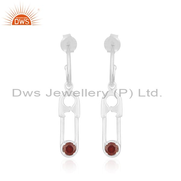 Natural Garnet Birthstone Fine Sterling Silver Pin Design Earring Wholesale