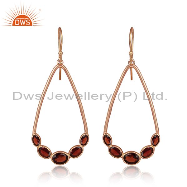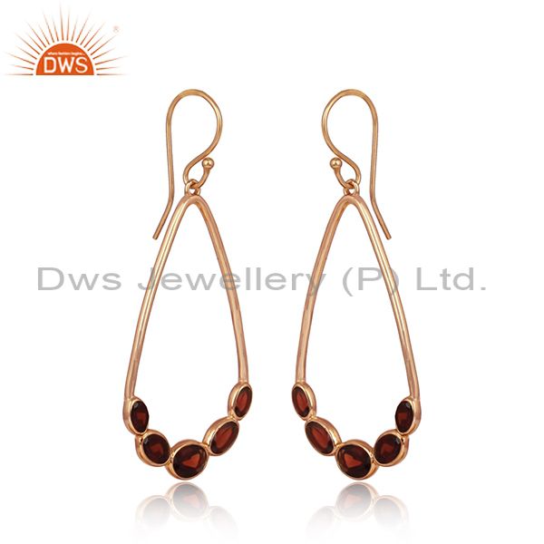 Natural Garnet Gemstone Rose Gold Plated Silver Designer Earrings