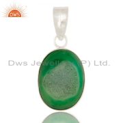 Natural Green Druzy Agate Sterling Silver Bezel-Set Oval Earrings For Women