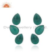 Natural Green Onyx Gemstone Designer Fine Silver Earrings Jewelry