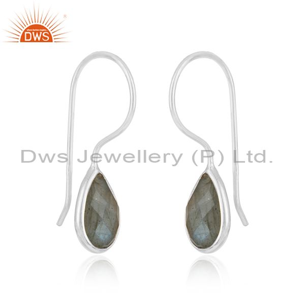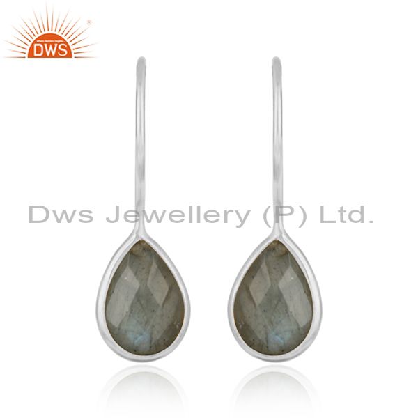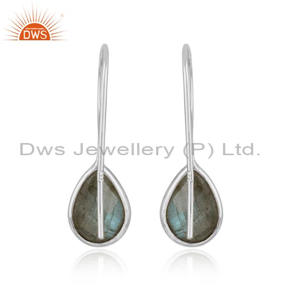 Natural Labradorite Gemstone Designer Sterling Silver Hook Earrings