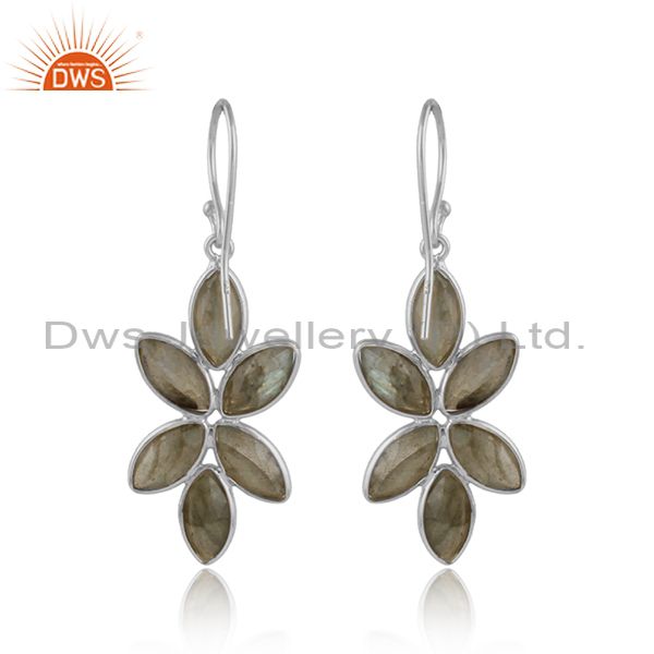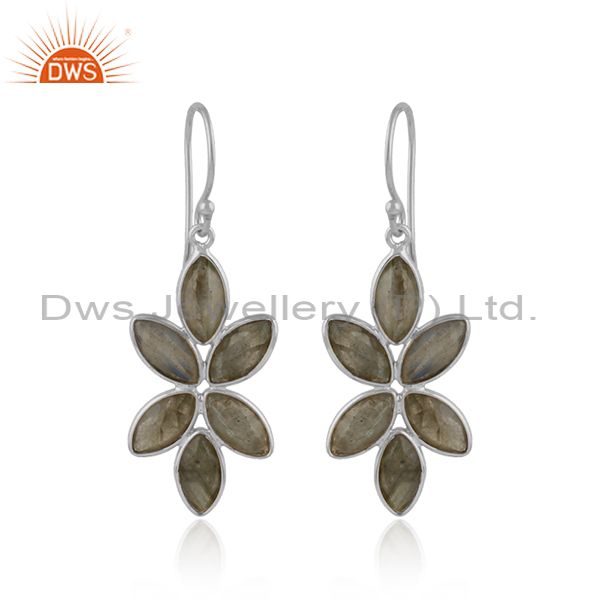 Natural Labradorite Gemstone Floral Fine Sterling Silver Earrings
