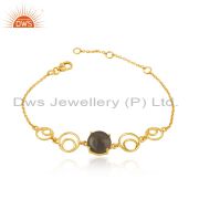Natural Labradorite Gemstone Gold Plated 925 Silver Designer Earrings