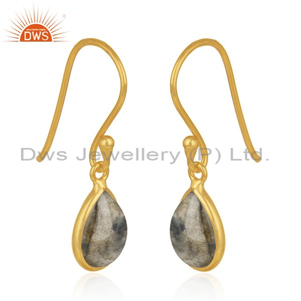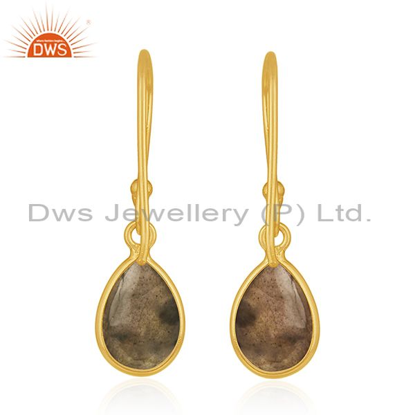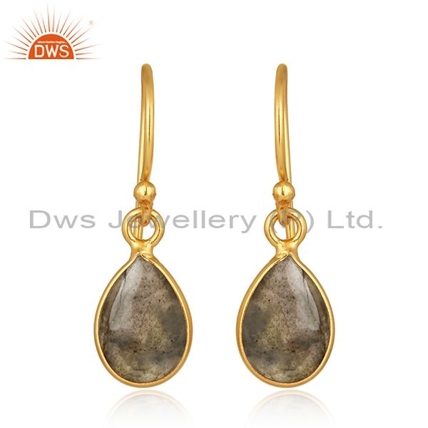 Natural Labradorite Gemstone Gold Plated 925 Silver Simple Drop Earring Supplier