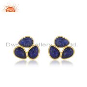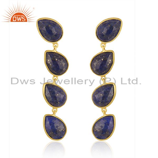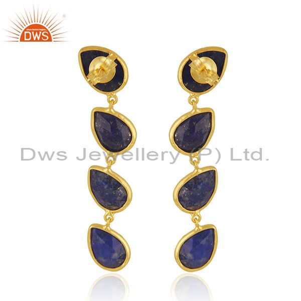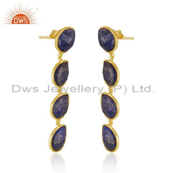 Natural Lapis Gemstone 18K Gold Plated 925 Silver Dangle Earrings Jewelry