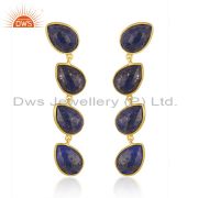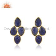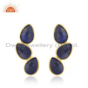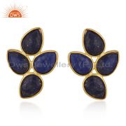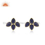 Natural Lapis Gemstone Designer Yellow Gold Plated Silver Stud Earrings