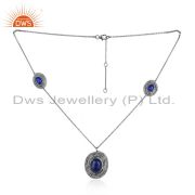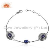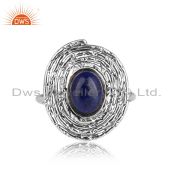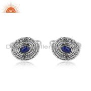 Natural Lapis Lazuli Gemstone Designer Oxidized 925 Silver Earrings