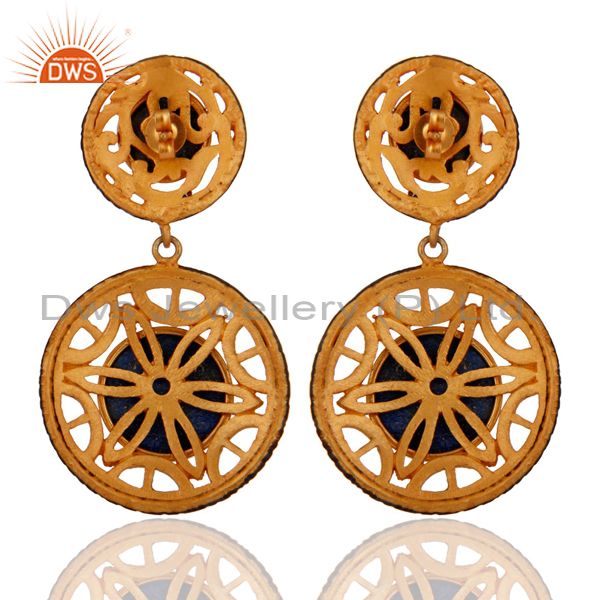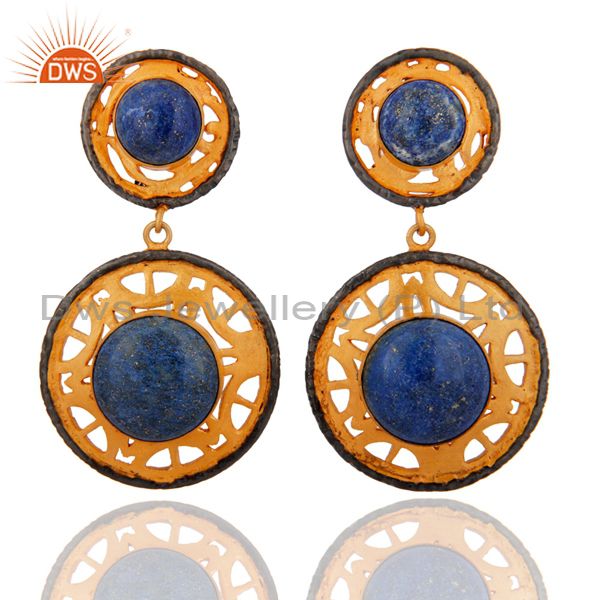 Natural Lapis Lazuli Gemstone Earrings 18K Yellow Gold Over Brass Jewelry