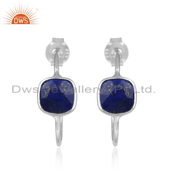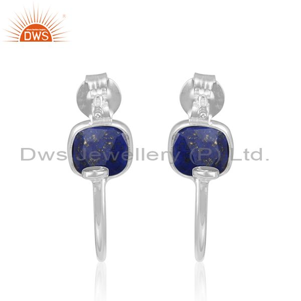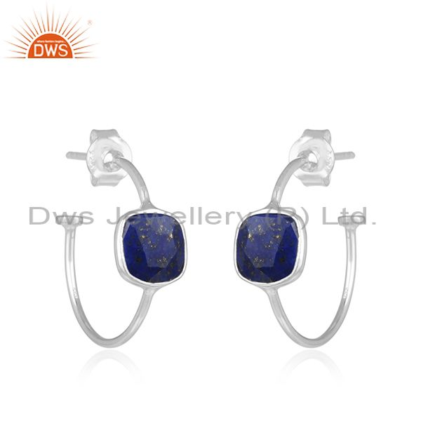 Natural Lapis Lazuli Gemstone Fine Sterling Silver Hoop Earrings