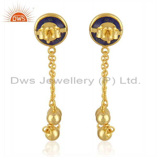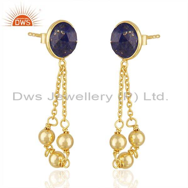 Natural Lapis Stone Designer Gold Plated Silver Chain Designer Earrings