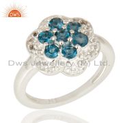 Natural London Blue Topaz 925 Sterling Silver Earrings With White Topaz