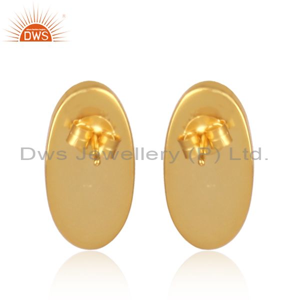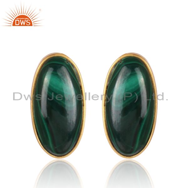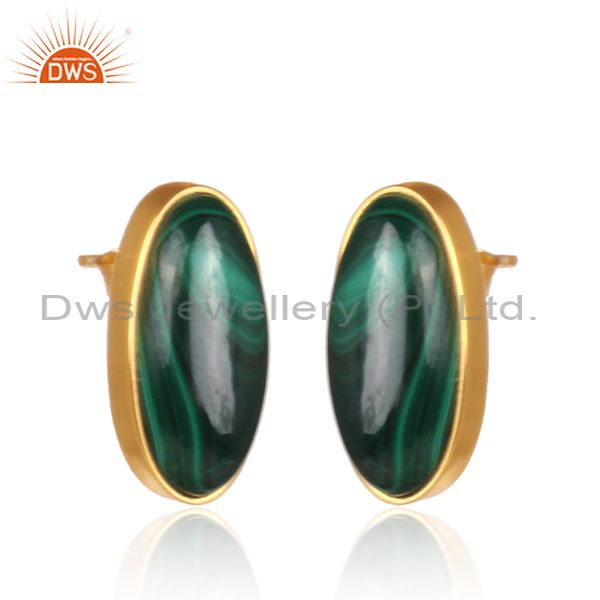 Natural Malachite Gemstone Gold Plated 925 Silver Stud Earring for Girls Jewelry