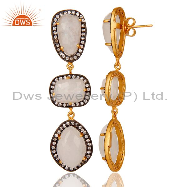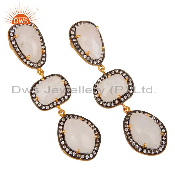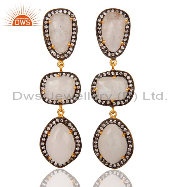 Natural Moonstone And White Cz 18K Gold Plated Drop Dangle Earring Stud