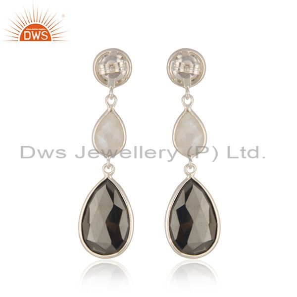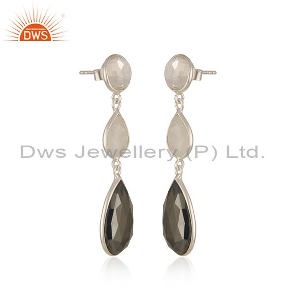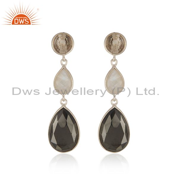 Natural Multi Gemstone Fine Sterling Silver Dangle Earring Manufacturer India