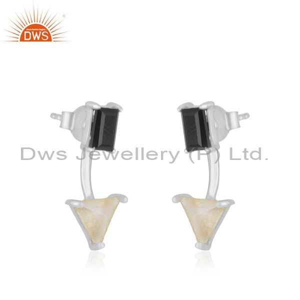 Natural Multi Gemstone Fine Sterling Silver Stud Earring Manufacturer INdia