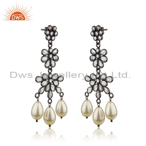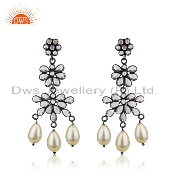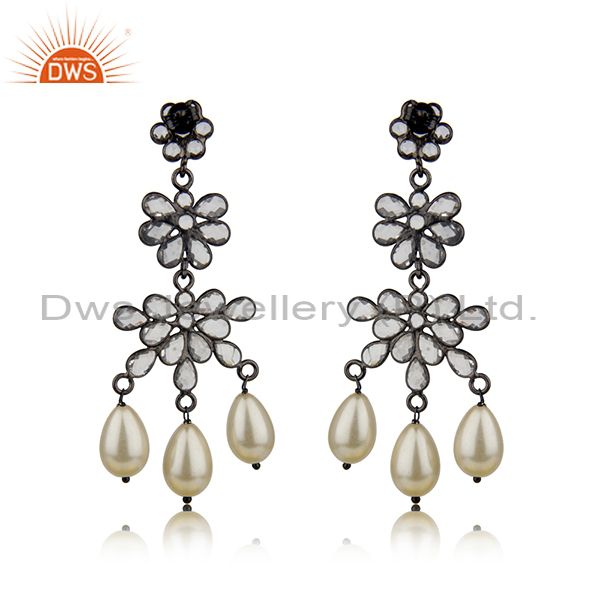 Natural Pearl and White Zircon Black 925 Silver Earring Wholesale Suppliers
