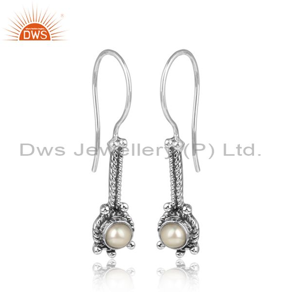 Natural Pearl Gemstone Designer 925 Silver Antique Oxidized Earrings