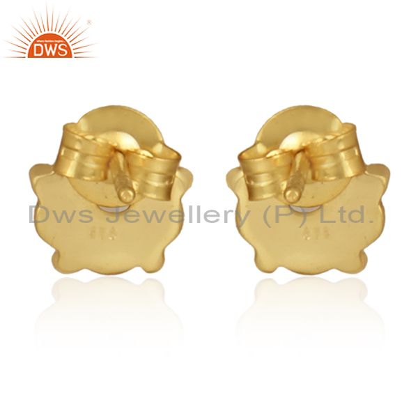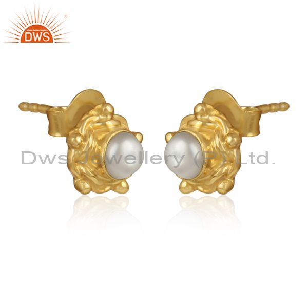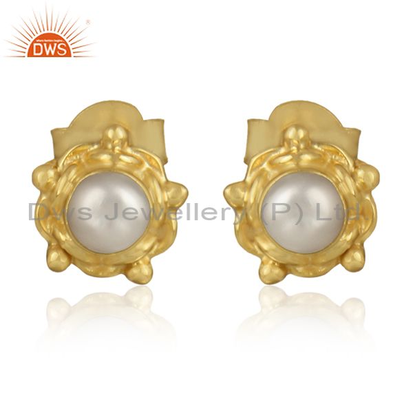 Natural Pearl Gemstone Handmade Gold Plated Silver Round Earrings