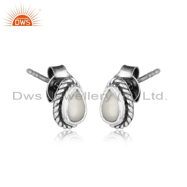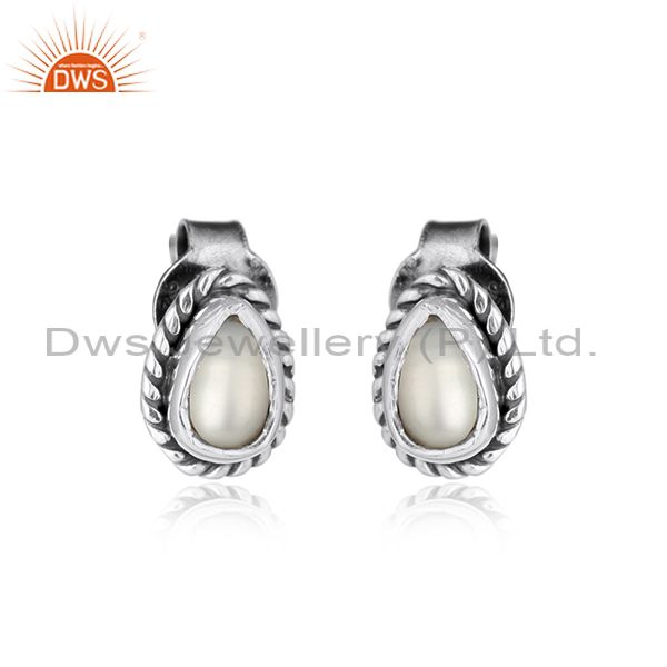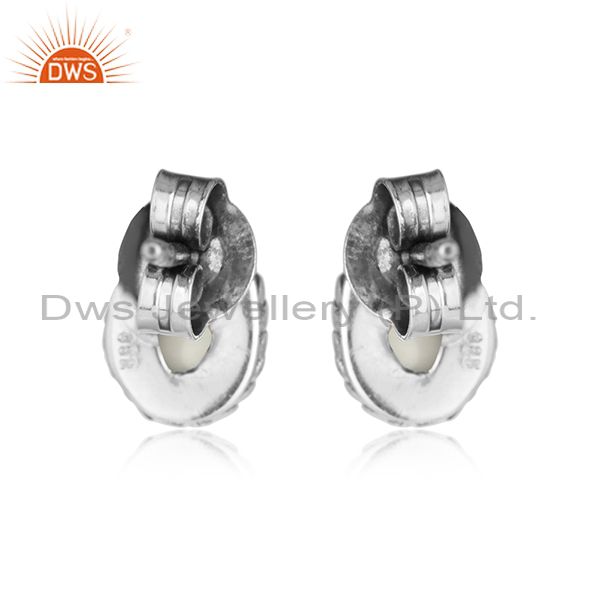 Natural Pearl Gemstone Handmade Oxidized 925 Silver Stud Earrings