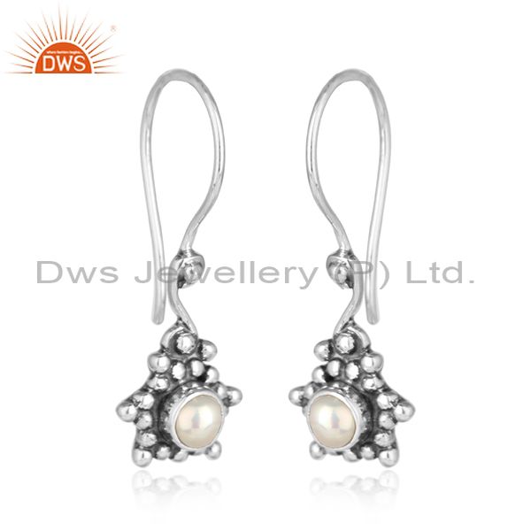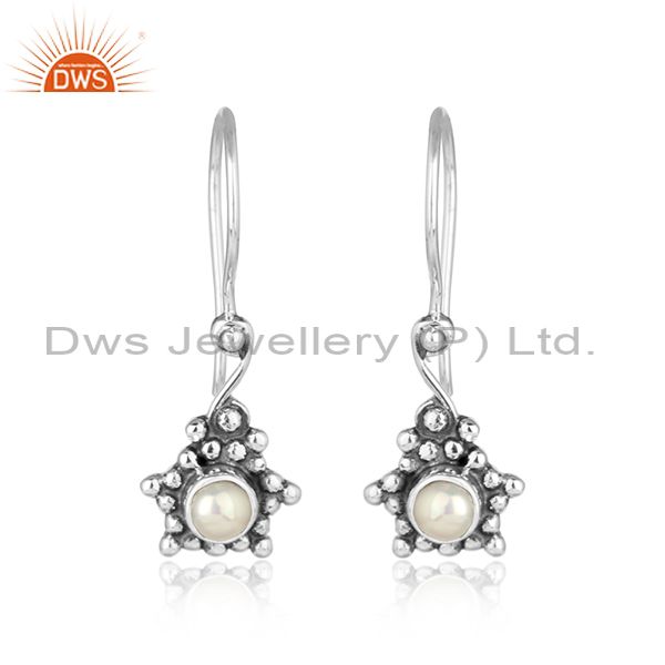 Natural Pearl Gemstone Oxidized Silver Designer Womens Earrings