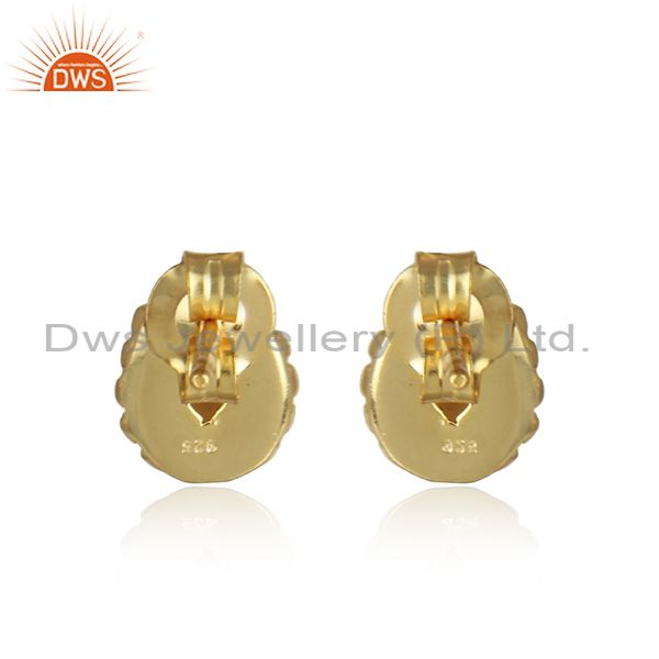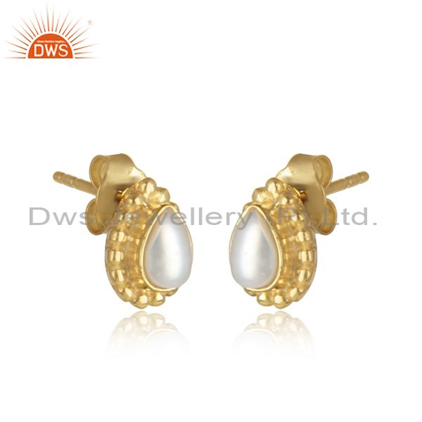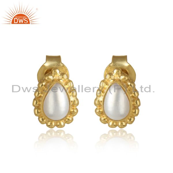 Natural Pearl Gemstone Womens 18K Gold Plated Silver Stud Earring