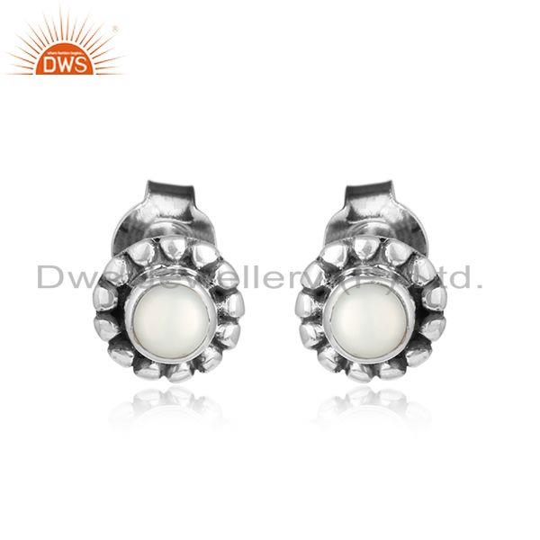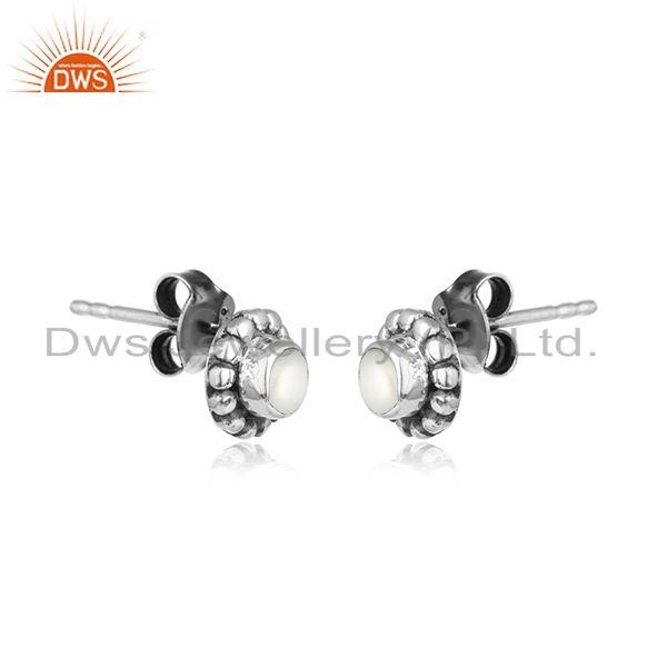 Natural Pearl Gemstone Womens Oxidized 925 Silver Stud Earring