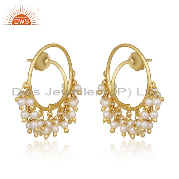 Natural Pearl Gold Plated 925 Silver Designer Earrings Manufacturer of Jewelry