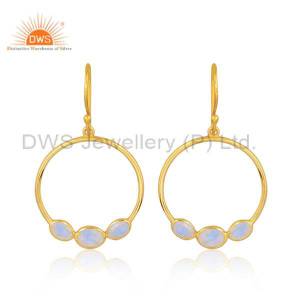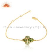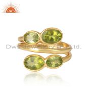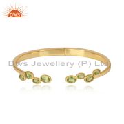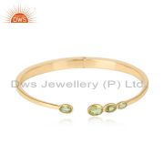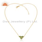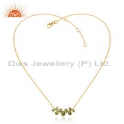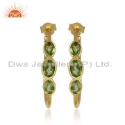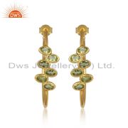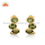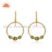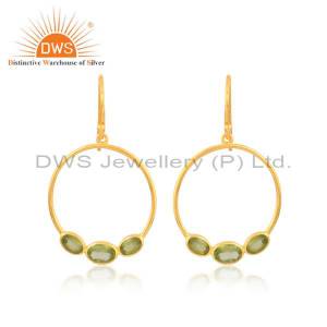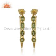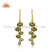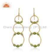 Natural Peridot Gemstone Handmade Gold Plated Silver Dangle Earrings