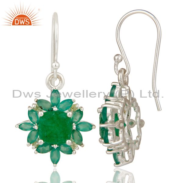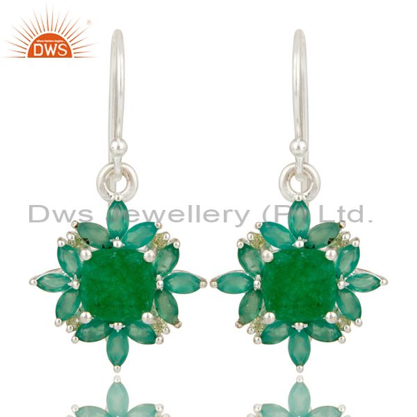 Natural Peridot Green Aventurine and Onyx Gemstone Sterling Silver Earrings