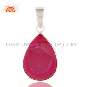 Natural Pink Druzy Agate Sterling Silver Bezel-Set Drop Earrings