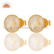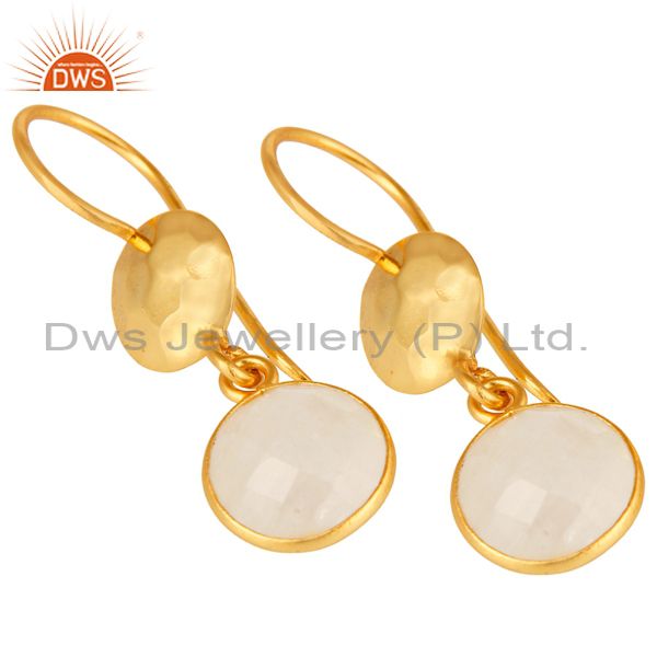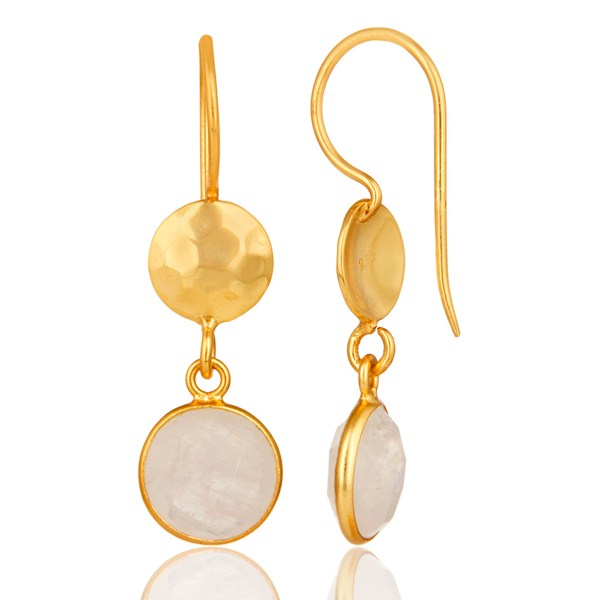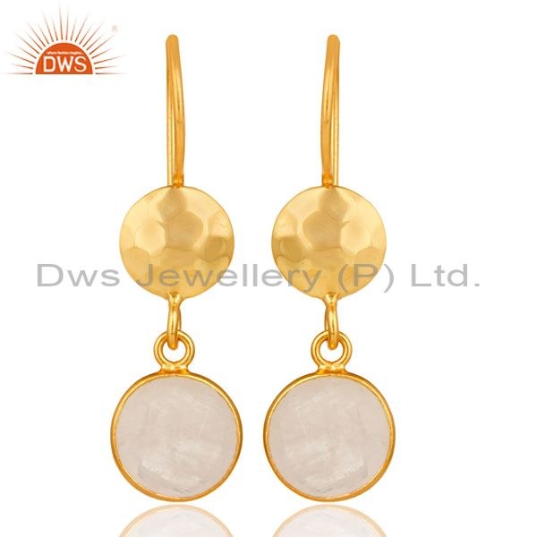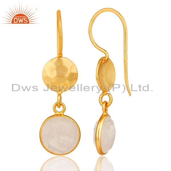 Natural Rainbow Moonstone Dangle Earrings Made In 18K Gold Over Solid Silver