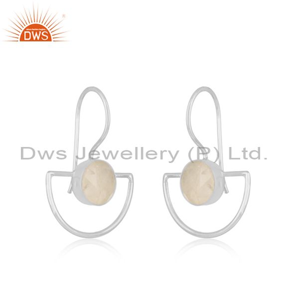 Natural Rainbow Moonstone Handmade 925 Fine Silver Designer Earring Manufacturer