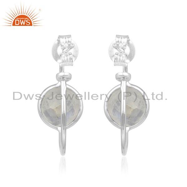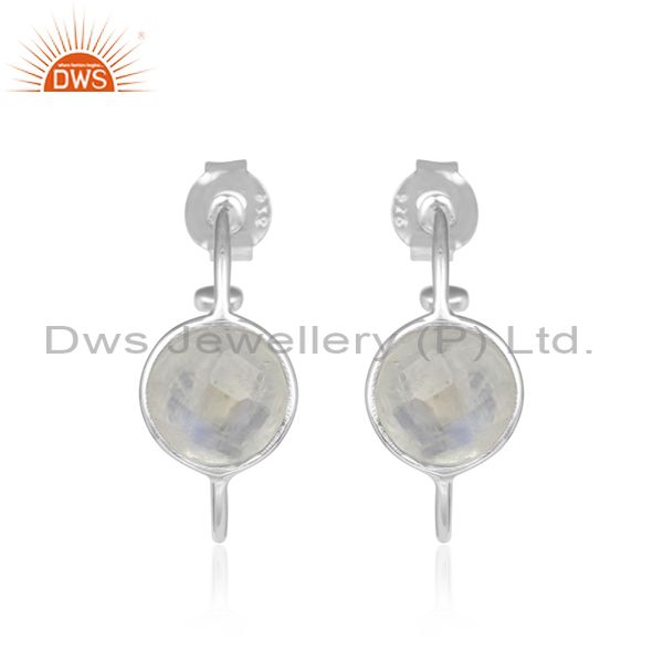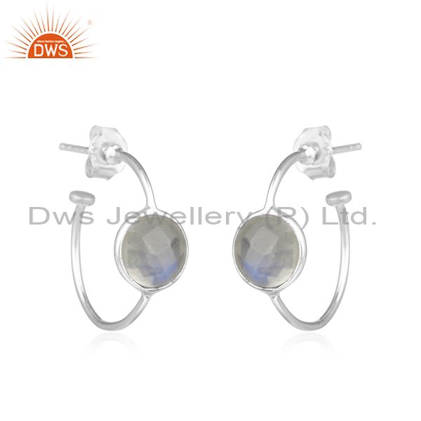 Natural Rainbow Moonstone Handmade Fine Silver Hoop Earrings Supplier