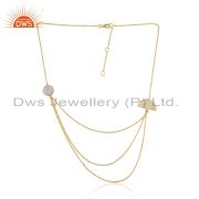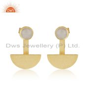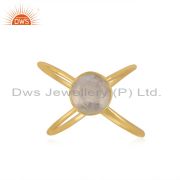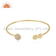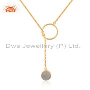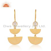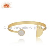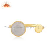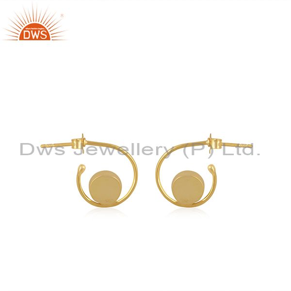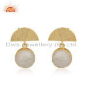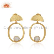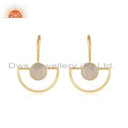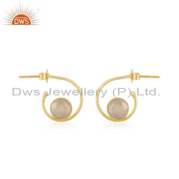 Natural Rainbow Moonstone Yellow Gold Plated 925 Sterling Silver Hoop Earring