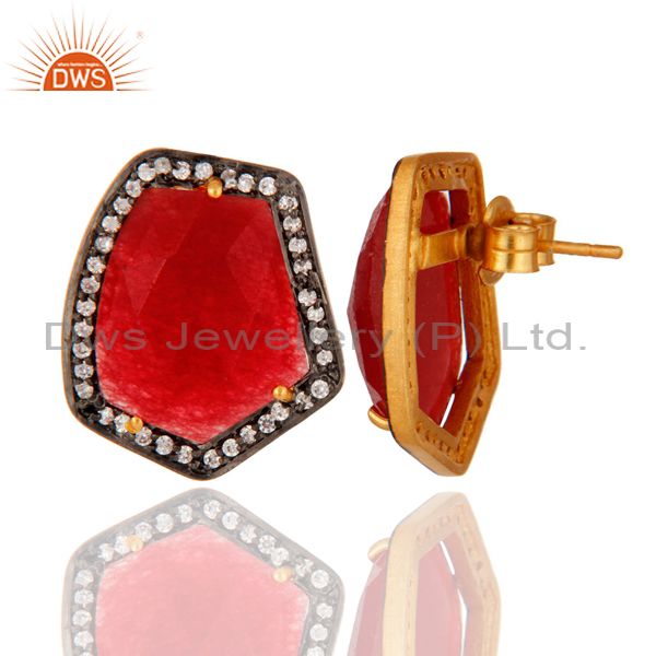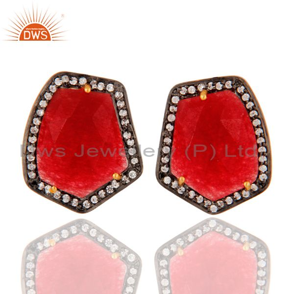 Natural Red Aventurine Gemstone 925 Sterling Silver Stud Earrings With Zircon