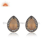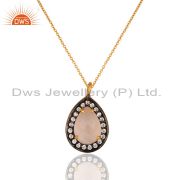 Natural Rose Chalcedony Gemstone Earrings Made In 22K Gold Over Sterling Silver
