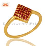 Natural Ruby Gemstone Sterling Silver Dangle Earrings - Yellow Gold Plated