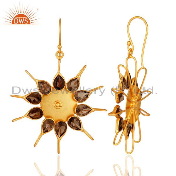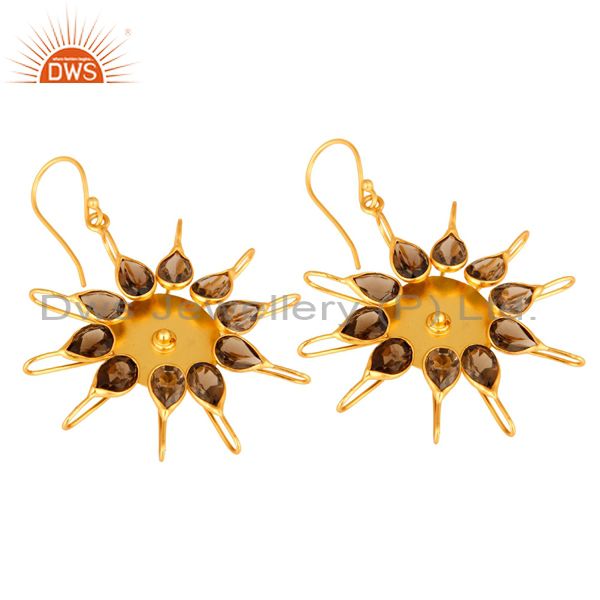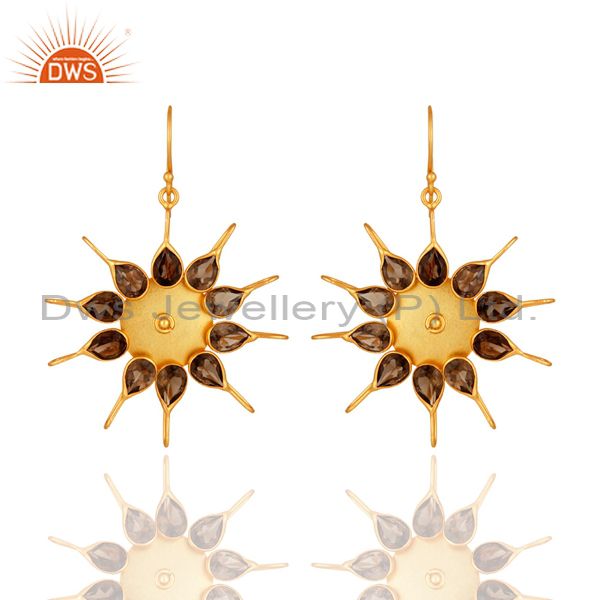 Natural Smoky Quartz Gemstone Designer Earrings Made In 14K Yellow Gold Plated