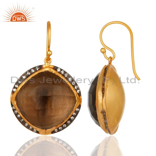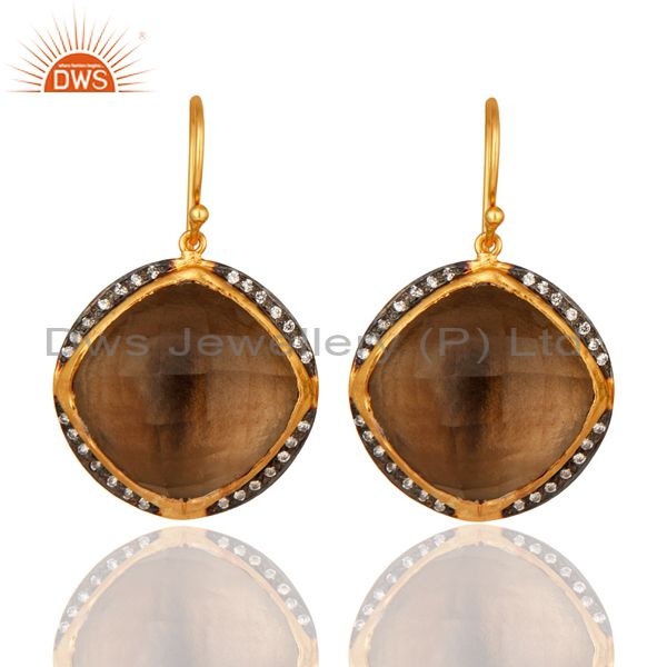 Natural Smoky Quartz Gemstone Sterling Silver Drop Earrings With 18K Gold Plated