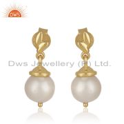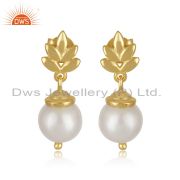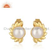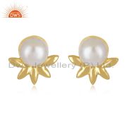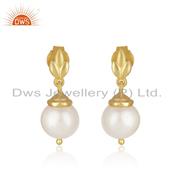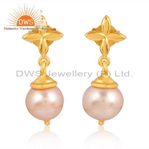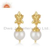 Natural South Sea Pearl Gemstone Gold Plated Sterling Silver Earrings