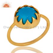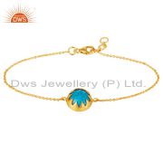 Natural Turquoise Gemstone Gold Plated Sterling Silver Dangle Earrings