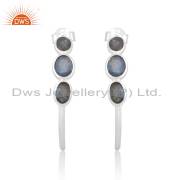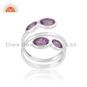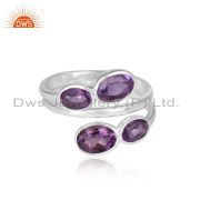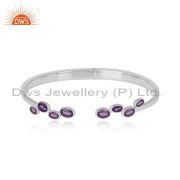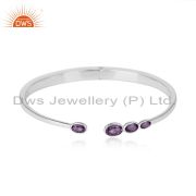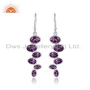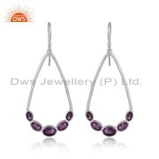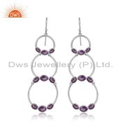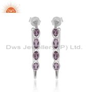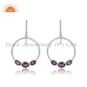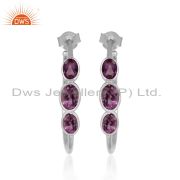 Naturl Amethyst Gemstone Designer Sterling Silver Hoop Earrings