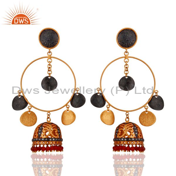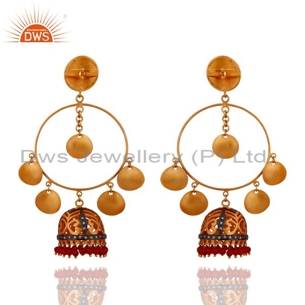 New 18K Yellow Gold Plated Natural Gemstone Red Onyx Dangle Chanaelier Earrings