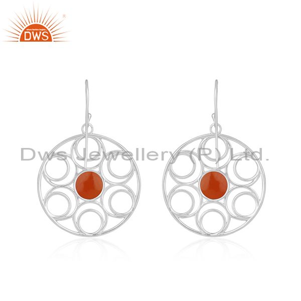 New Arrival Fine Sterling Silver Red Onyx Gemstone Designer Earrings