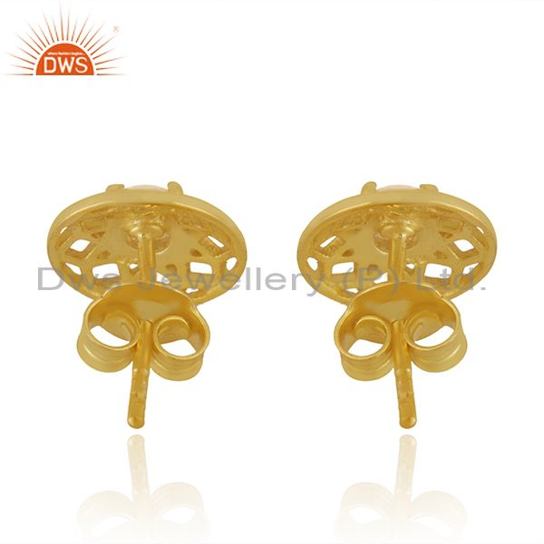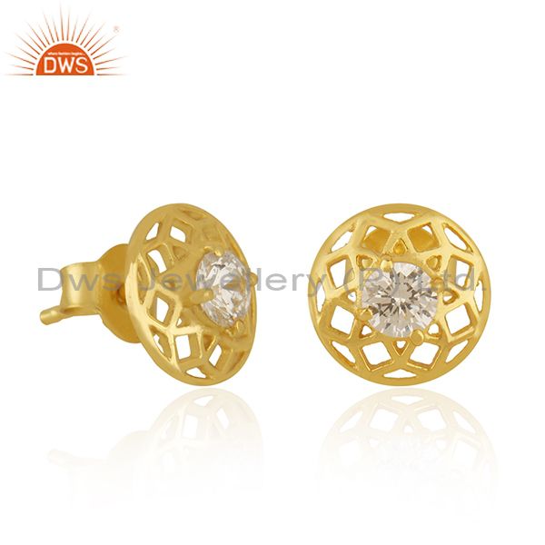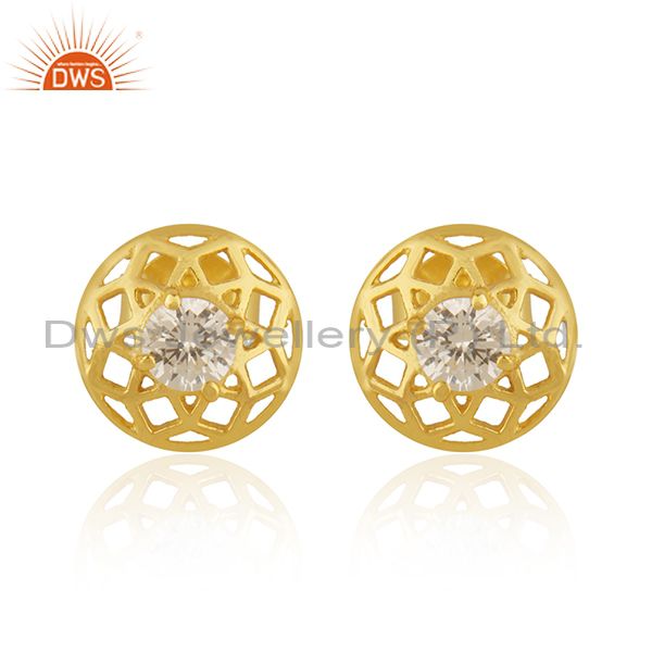 New Arrival Gold Plated 925 Silver White Zircon Round Stud Earrings For Girls