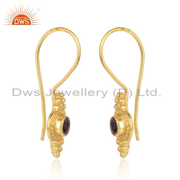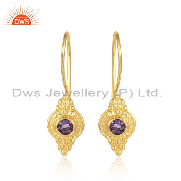 New Arrival Gold Plated Silver Amethyst Gemstone Handmade Earring